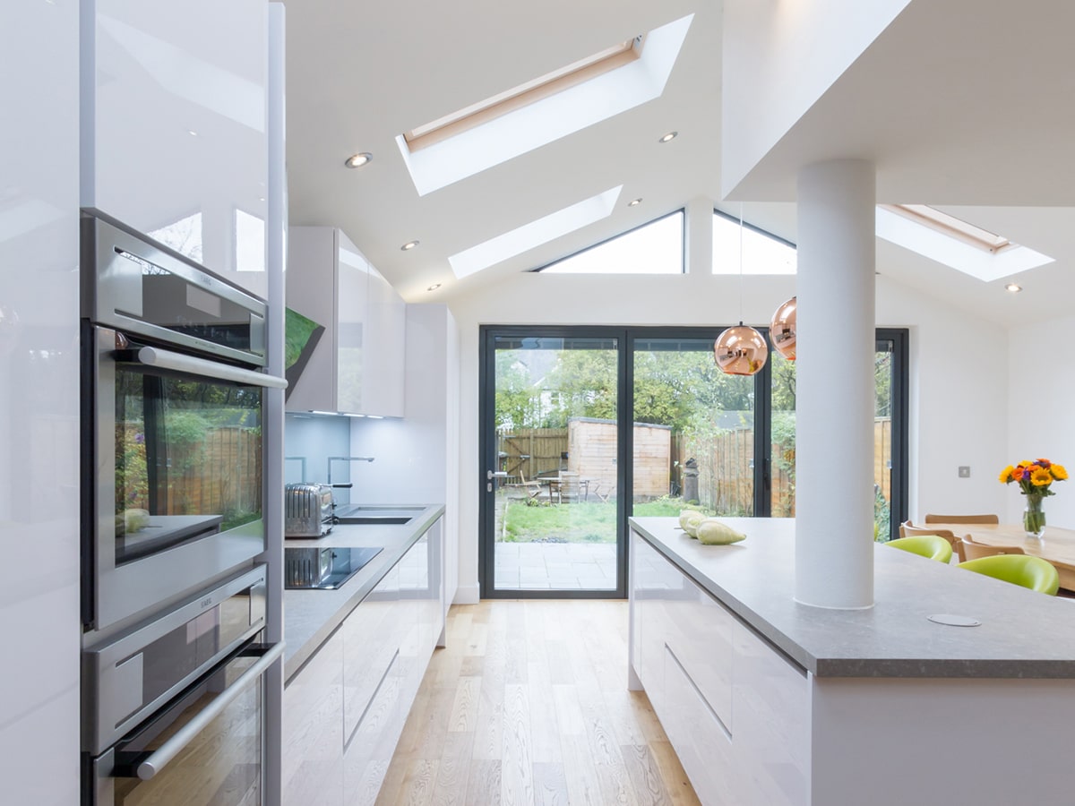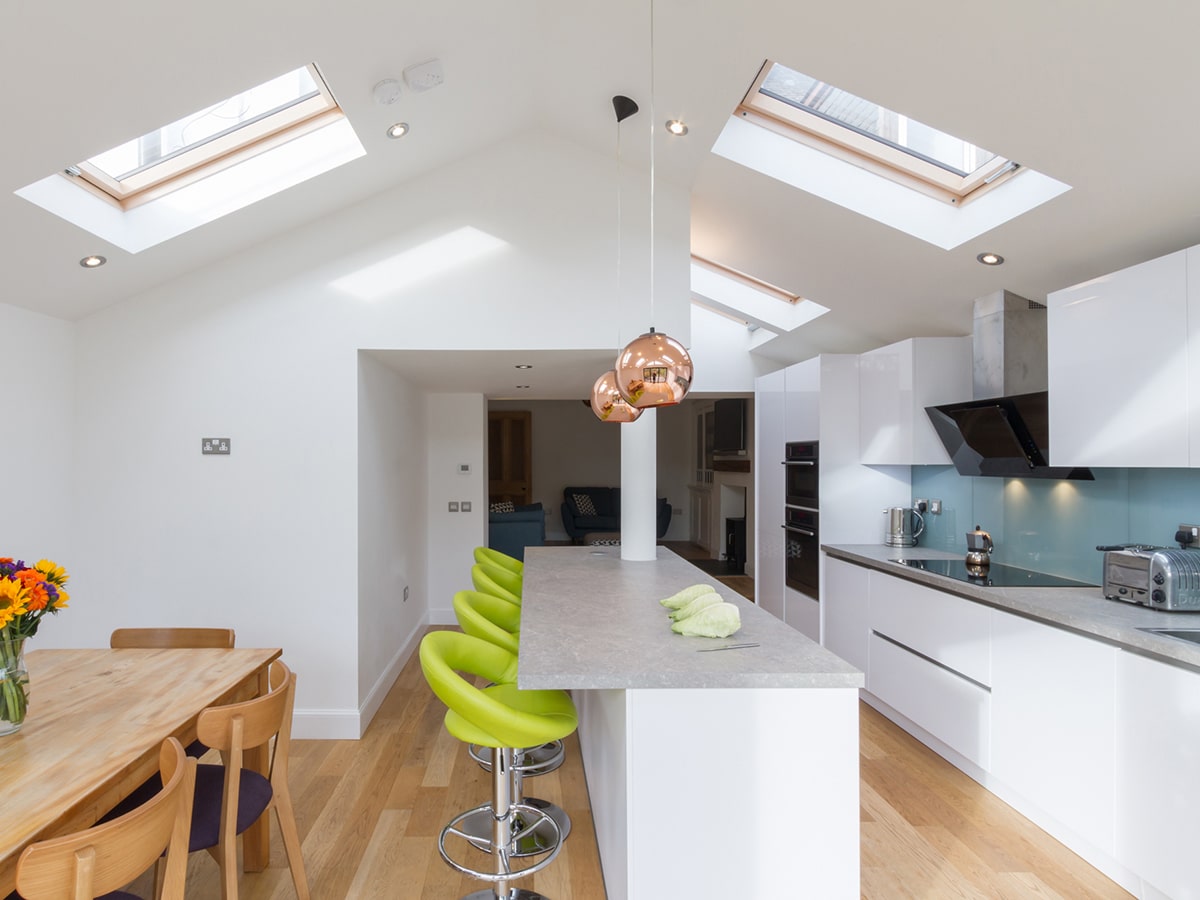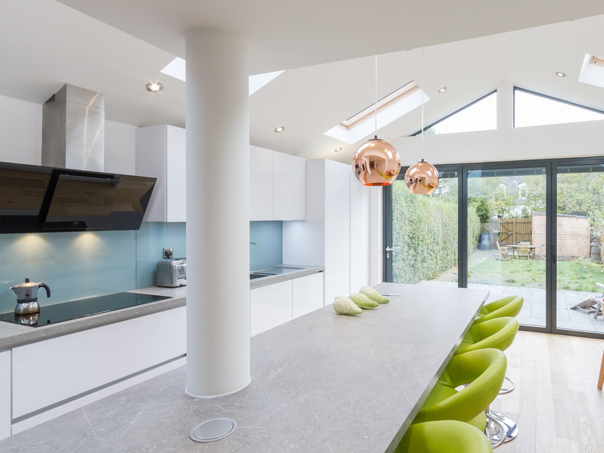 A typical outdated terraced house was transformed into an inviting, modern home by Opti Construction. An external architectural firm designed the extension, with everything from building, decorating, kitchen and bathroom installation being handled by us.